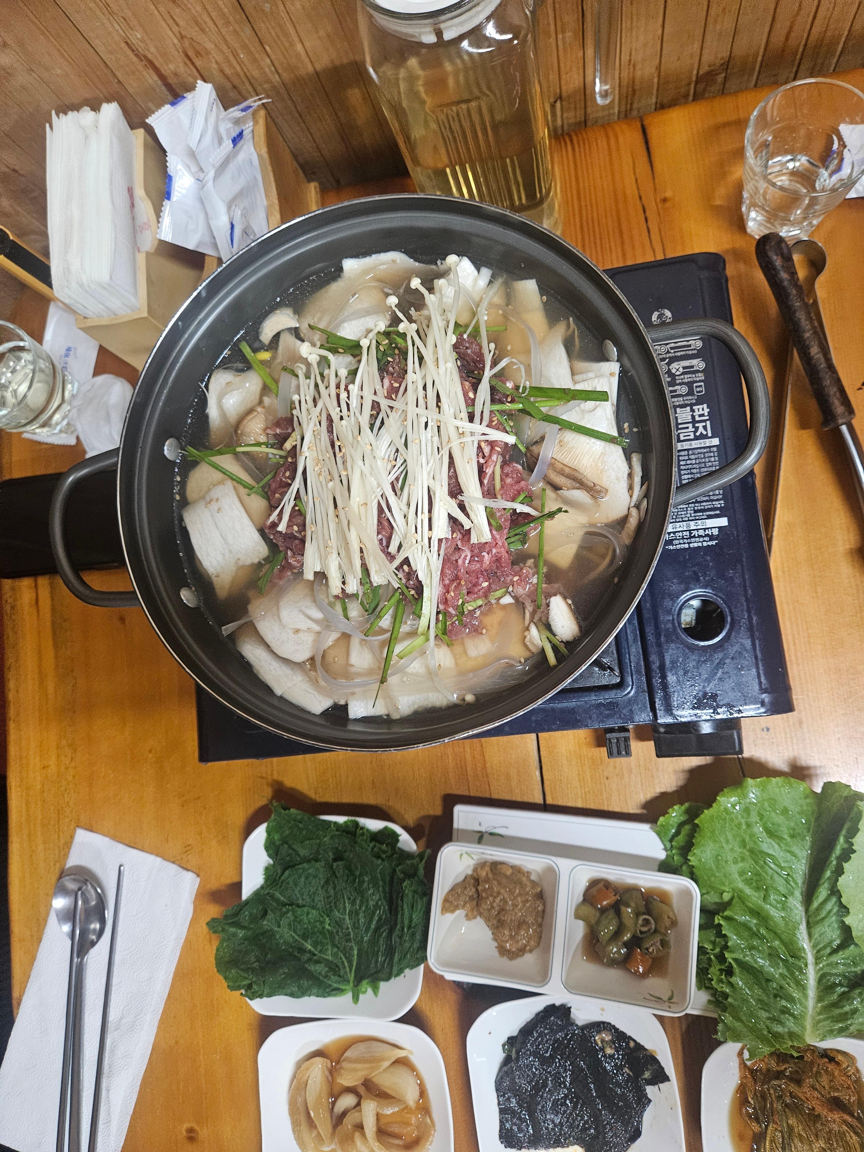 이것은 불고기 전골로 주 메뉴 중에 하나입니다. 국물맛이 담백하고 건강한 느낌이 팍 생기는 맛입니다.